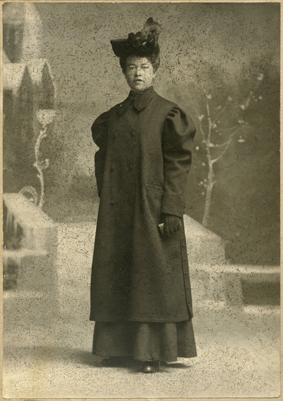 Ei kvinne på jobb ved Wilhelm Kahrs Kemisk Renseri & Farveri, Bergen. Påskrifta på biletet lyder: "Amerikanske apparater for Strykning".